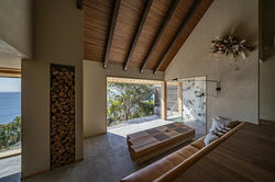 Upon entering, the ocean appears directly ahead, with the line of sight extending naturally toward the horizon. A maximum ceiling height of approximately 6.2 meters, combined with subtle level changes in the floor, introduces vertical spatial expansion within a compact footprint, ensuring a constant visual connection to the sea from any position.