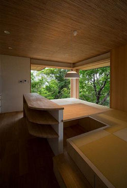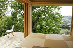 When lying on the tatami mats with all of the sliding doors tucked away,eye level is close to the branches