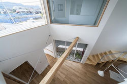 またコンパクトながらも生活の広がりを感じられるように、中庭(水平方向)や5mの天井高さのLDK(縦方向)といった、床面積だけでは測れない空間の豊かさを計画しています。